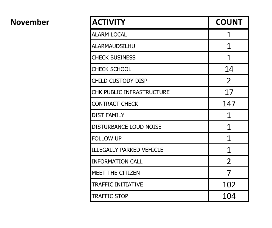 As a courtesy to our residents, the HOA is posting below an extract from the latest HCSO monthly report of the activities that occurred within the Settlement and a link to the year-to-date figures of that same information beginning with 2023.