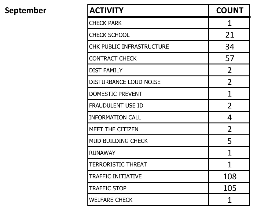 As a courtesy to our residents, the HOA is posting below an extract from the latest HCSO monthly report of the activities that occurred within the Settlement and a link to the year-to-date figures of that same information beginning with 2023.